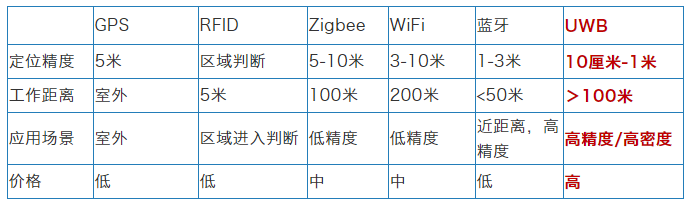 UWB(Ultra Wideband) 是一種無(wú)載波通信技術(shù),利用納秒至微秒級(jí)的非正弦波窄脈沖傳輸數(shù)據(jù)。通過(guò)在較寬的頻譜上傳送極低功率的信號(hào)。UWB 技術(shù)出現(xiàn)是在上世紀(jì)60 年代,主要用于軍事雷達(dá)。2002年,F(xiàn)CC正式將 3.1 GHz- 10.6 GHz 頻帶作為室內(nèi)通信用途的 UWB 開(kāi)放,逐漸推動(dòng)了UWB民用無(wú)線通信。隨著物聯(lián)網(wǎng)的興起,UWB技術(shù)應(yīng)用迎來(lái)更多的機(jī)遇。相比較其他定位技術(shù),UWB具備定位精度高、安全性好、傳輸速率高、系統(tǒng)容量大、功耗低、抗干擾能力強(qiáng)等諸多優(yōu)勢(shì)。