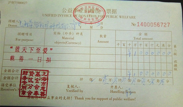 公司為“藍(lán)天下的至愛”慈善募捐活動添磚加瓦